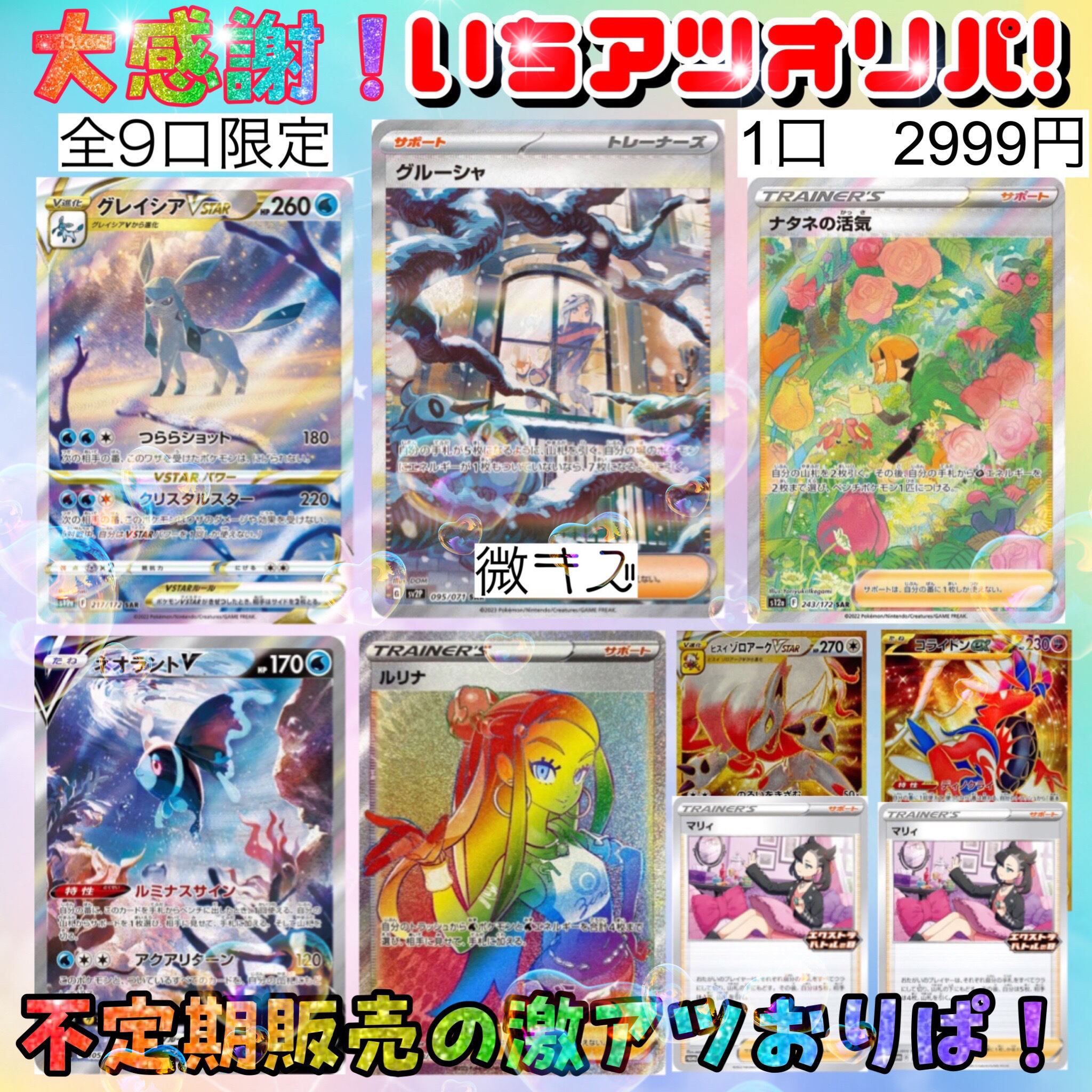 ・封入のカードの状態は基本的に良好ですが、一部初期キズ、微キズありカードがある場合があります。一律【プレイ用】としてお考え下さい。